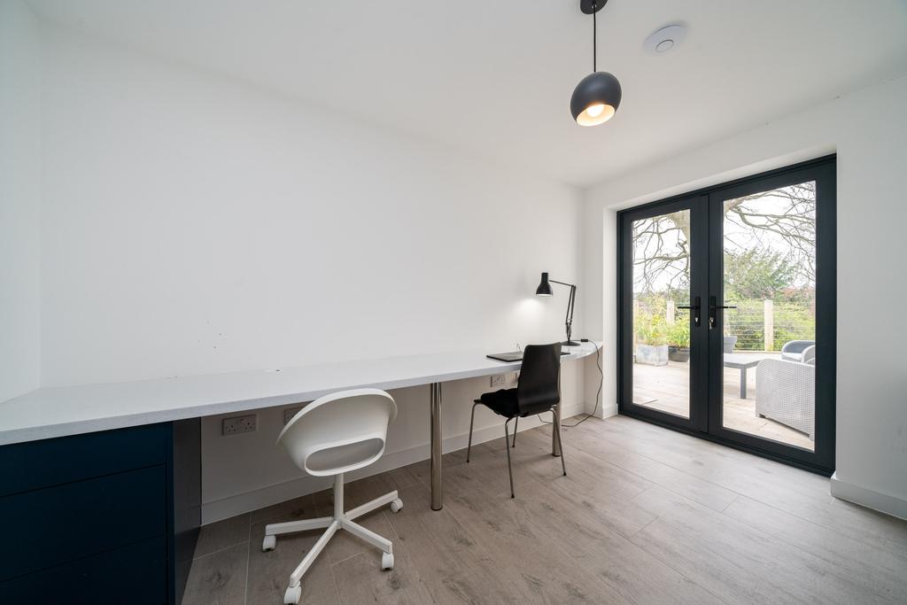 An impressive kitchen/dining/family room is at the heart of this stunning home. Featuring stylish kitchen cabinetry with large island unit, this room further benefits from expansive bifold doors allowing access on to the generous terrace. There is a separate living room with fitted shelving and cupboards, an office featuring french doors to the rear, a utility room and cloaks/WC. The ground floor further offers a double bedroom with modern ensuite shower room. Underfloor heating runs throughout.