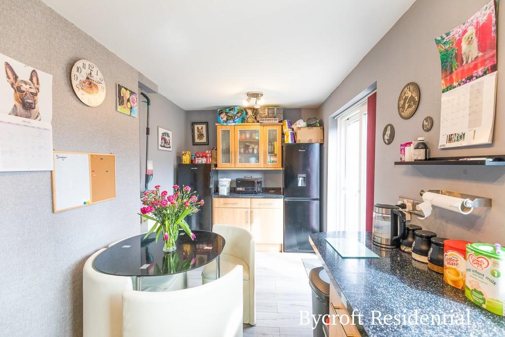 KITCHEN / DINER 17' 5" x 7' 11" (5.31m x 2.41m) worktop with a range of base and wall units; built in oven with four ring hob, light and extractor; space and plumbing for washing machine and dishwasher; space for upright fridge freezer; radiator; window to rear aspect; sliding patio doors to rear.