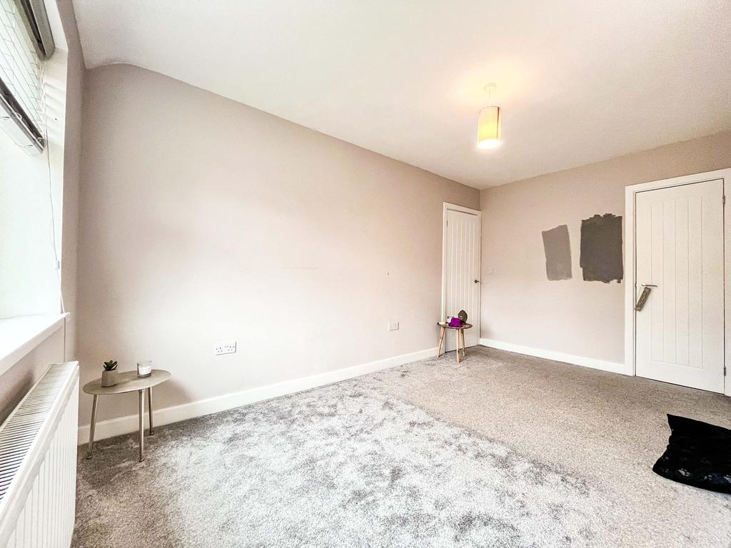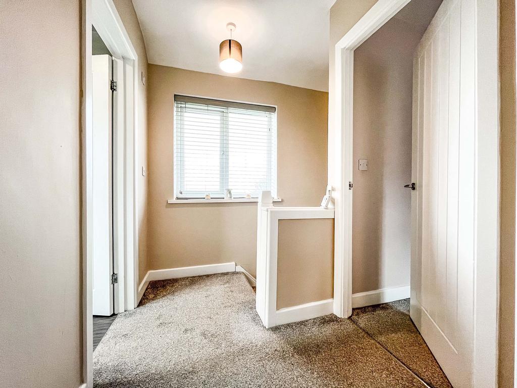 Double glazed window to the side, carpet flooring and access to both bedrooms and family bathroom.