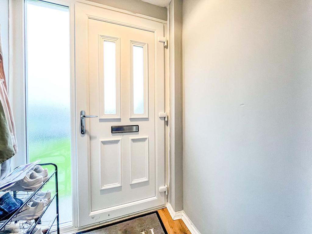 External glazed Upvc door, double glazed side panel, laminate flooring and access to: