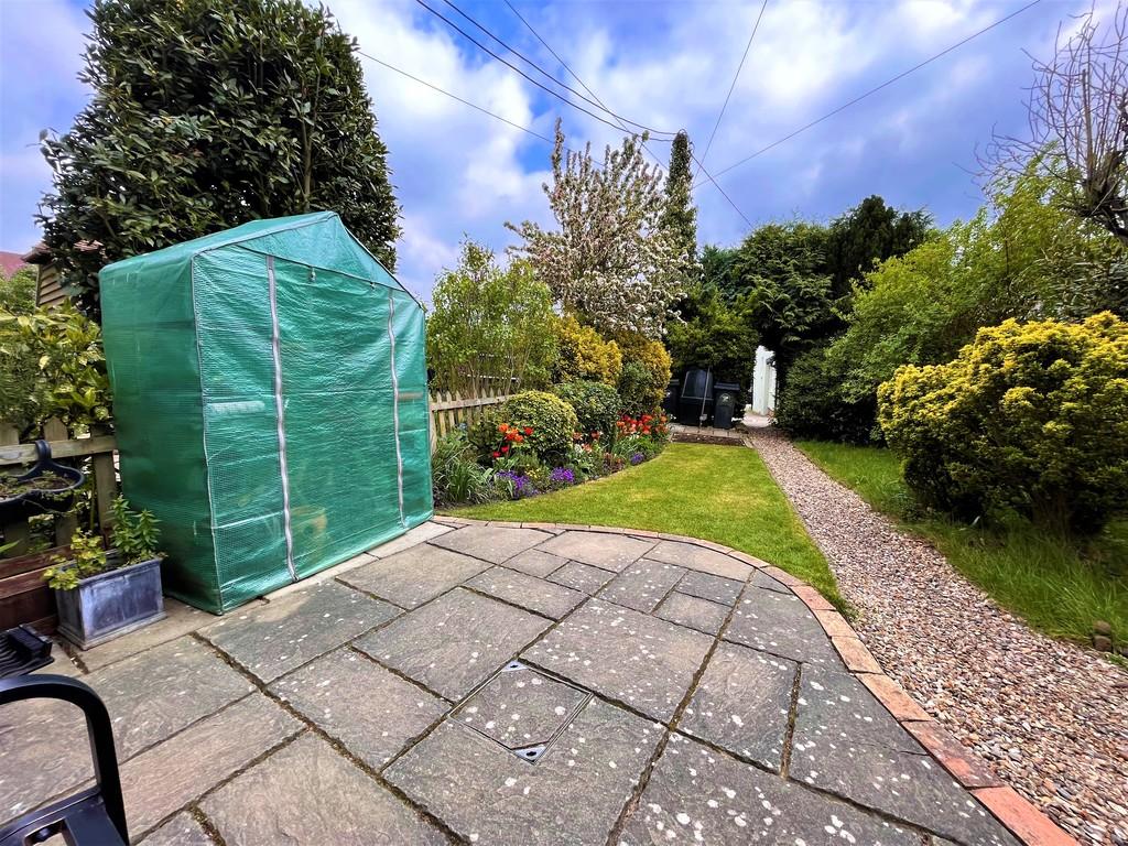 To the front is an attractive south facing garden laid mainly to lawn, with a small vegetable patch and a patio area immediately to the front of the house. There is a concealed oil storage tank and a shared pathway leading to the neighbouring cottage. The rear garden is a small courtyard, paved and backing onto the village playing fields with gate providing access