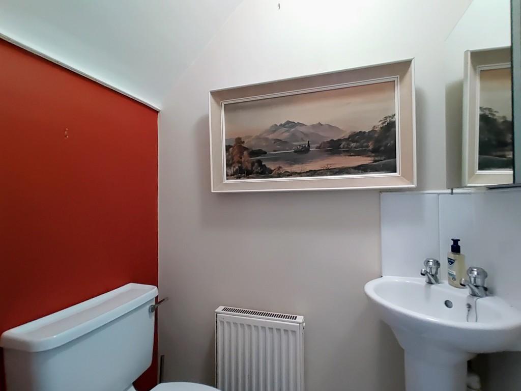 WC Low flush WC and a wall mounted wash basin. Central heating radiator and extractor fan.