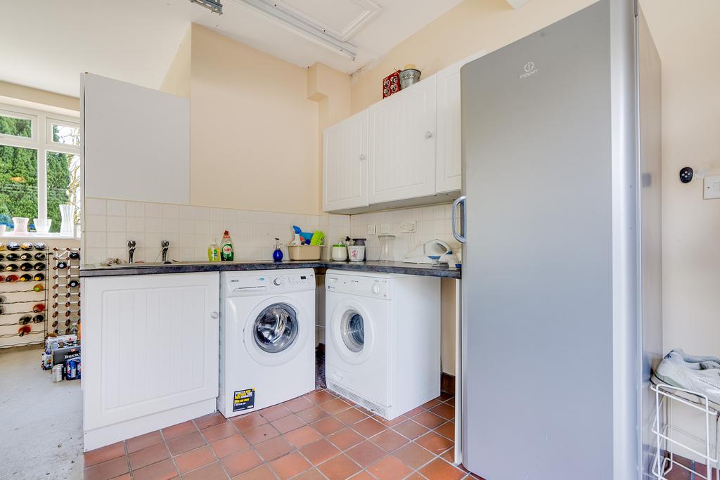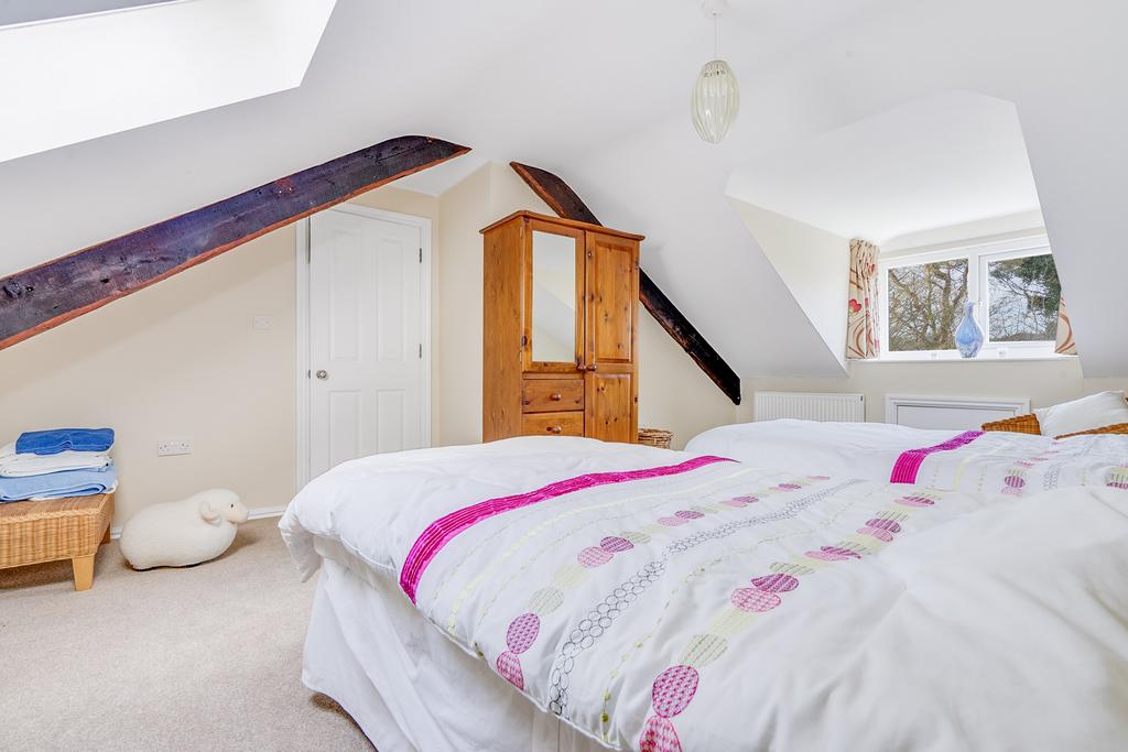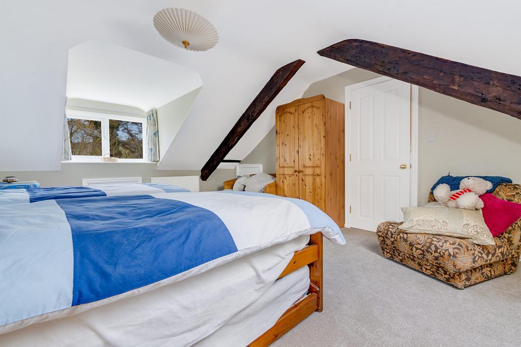 To the second floor there is a centrally located bathroom with two more double bedrooms either side with velux ceiling windows. Externally the property is approached via a sweeping driveway leading to the courtyard style parking area with access to the large double garage, main house and lodges. Surrounding mature lawned gardens keep the rear garden private while capturing the all-day sun. To the side of the garage and the edge of the garden you can find another entrance to the integral large double garage which can comfortably fit two cars, storage shelves and the utility room area.