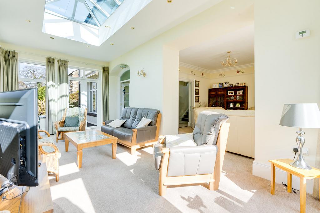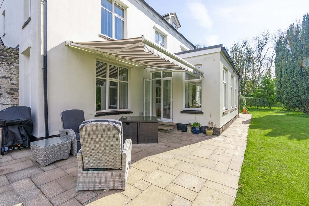 The accommodation comprises of a large entrance hall leading onto the living room/sun room which features floor to ceiling windows taking advantage of the mature gardens to the rear of the property. From the sunroom there is direct access to the patio area with electric awning for a all day sunshine, seating and BBQ area. In addition to the main reception area there is a large dining hall, modern kitchen/breakfast room, and a modern WC on the ground floor.