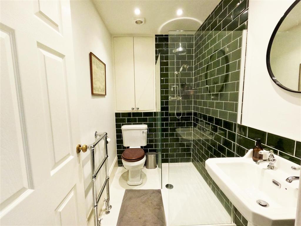 Shower Room: - Walk-in shower, period style mixer tap with hand shower apparatus and rain head shower, low-level WC, pedestal wash basin, mosaic tiled floor, part tiling to walls, inset ceiling down lighters, deep storage cosmetic cupboard, heated towel rail, extractor fan, under floor heating.