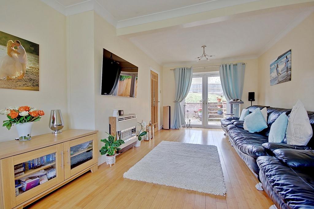 12' 0" x 21' 9" (3.66m x 6.63m) Double glazed bay window with a view of the front aspect. Double doors through to the rear garden. Feature gas fireplace. Wood effect flooring. Ceiling light points and radiator.