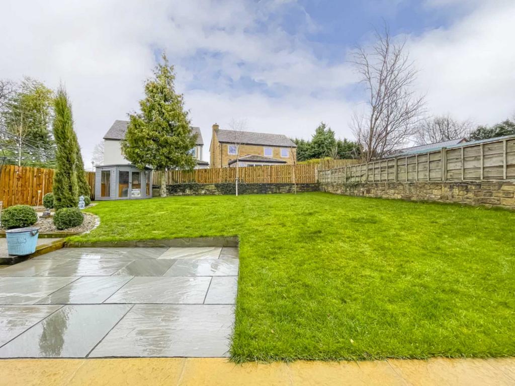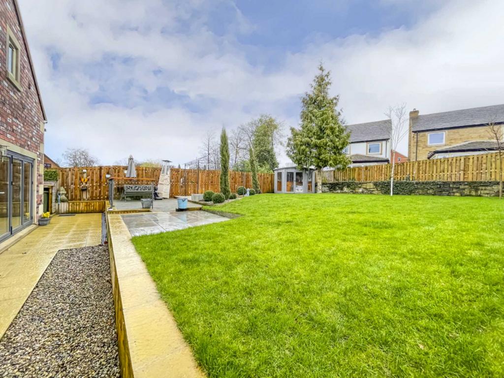 The property stands on a good sized plot with ample off street parking to the side which leads to the detached brick built garage with remote controlled up and over door, power and light. Courtesy door to the rear of the garage provides access to the rear garden. The pathway to the side of the house leads to the rear garden. To the rear of the property is an above average size private garden with paved and decked seating area, generous lawns and summer house.
