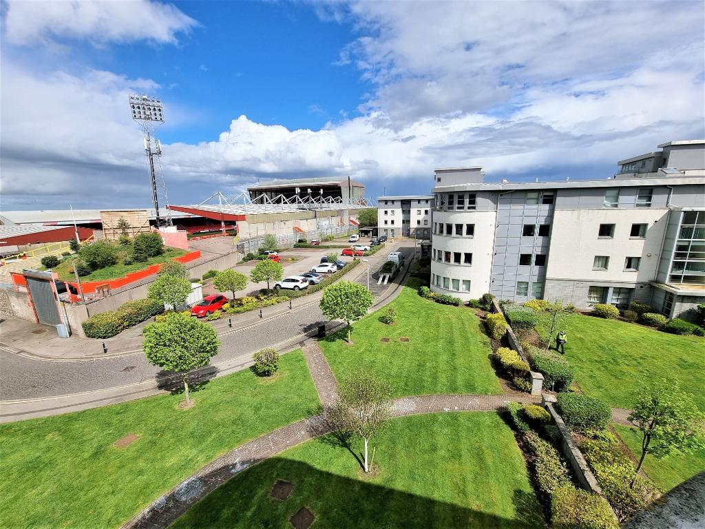Large open plan Kitchen/Living/Dining room with ample storage, the kitchen boasts a Fridge, Freezer, Dishwasher and Washing Machine. The Lounge and Dining room offer great views out over Pittodrie and the developments well maintained grounds: Master bedroom with built in storage and en-suite shower room: Family bathroom with shower over bath: Double bedroom with built in storage: Single bedroom with built in wardrobe (please note desks are no longer in place at the property); Hall with 2 storage cupboards