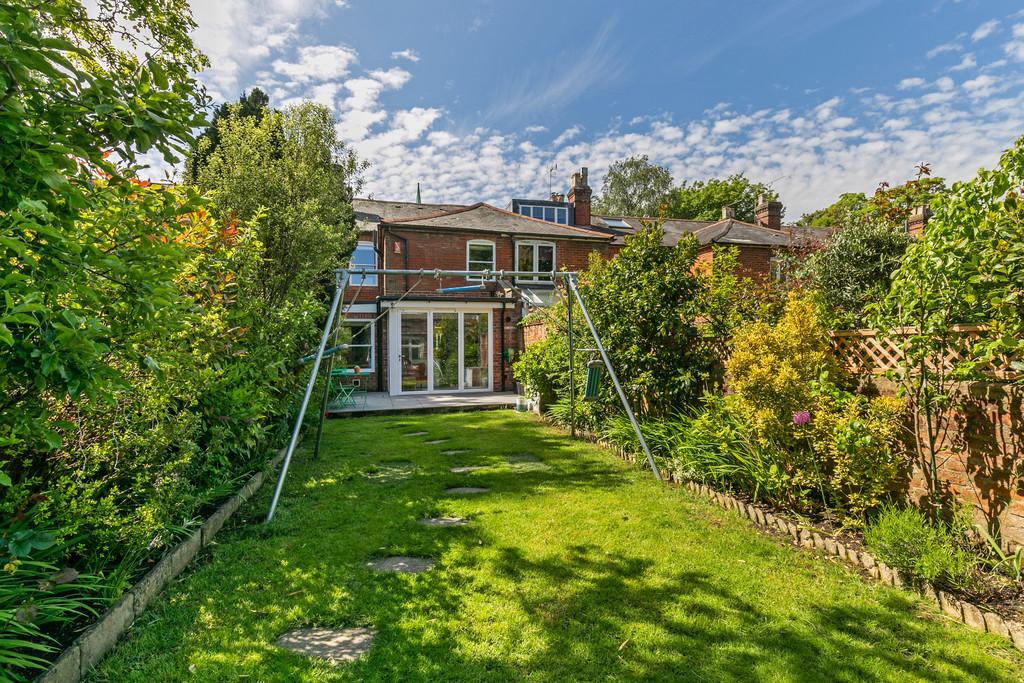 Imposing period house behind a pretty front façade offering exceptional family accommodation right in the heart of the city centre. A recessed front door sits behind beautifully landscaped front courtyard and opens into a welcoming entrance hall. The primary reception room lies to the front and is home to an open fire with fitted shelving and ornate ceiling cornice. The family room/snug lies in the centre of the house and opens into the impressive kitchen to the rear. This room has been cleverly extended to maximise space and natural light with the addition of a large lantern window. The kitchen has been arranged to promote a stylish and convivial kitchen/dining/family space and is home to an extensive range of handleless base units topped with Caesarstone cement worksurfaces with integral dishwasher. There is also space for a large range-style cooker. To the rear, bi-fold doors open seamlessly into the garden. The first floor has a master bedroom to the front with the clever addition of an en-suite shower room and a range of fitted wardrobes. There are two further bedrooms and a stylish family bathroom. The second floor has an additional double bedroom with attractive views over Holy Trinity church.