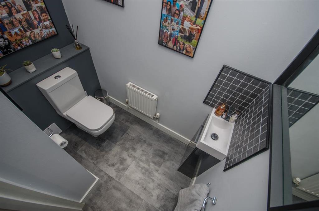 uPVC double glazed window to rear, ceiling with recessed LED spot lights, anthracite radiator.