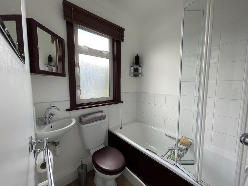 Bathroom 6'5 x 5'4- paneled bath with shower attachments over, low level w/c, hand basin, obscured double glazed window to rear aspect, tiled floor