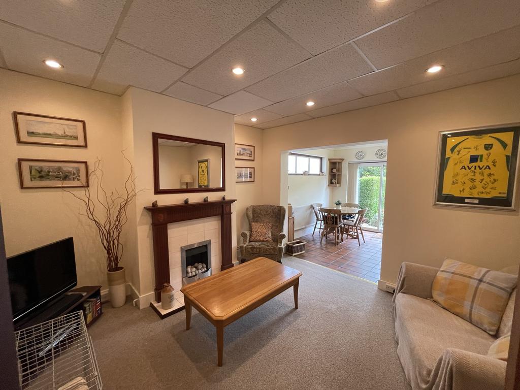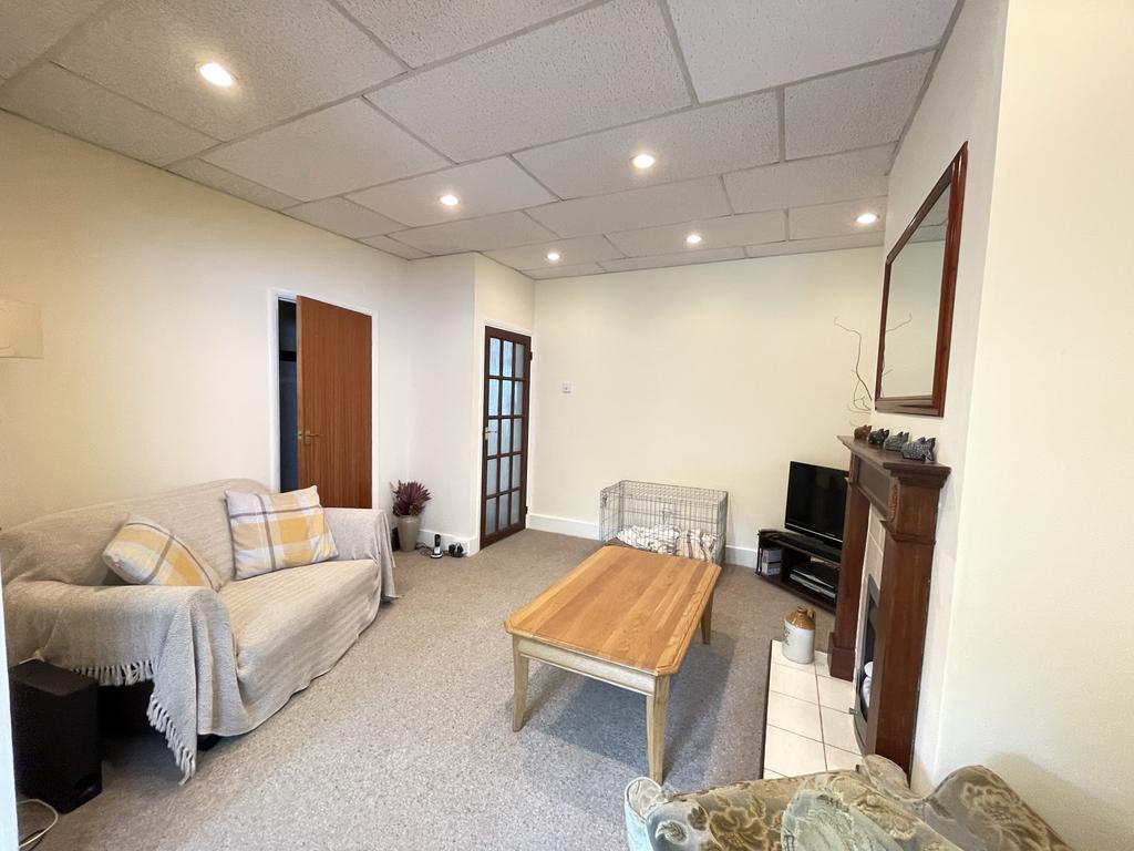 Reception 2- 12'10 x 12'2, fitted carpet, papered walls, gas fire (untested) spot lighting in tegular ceiling, door to