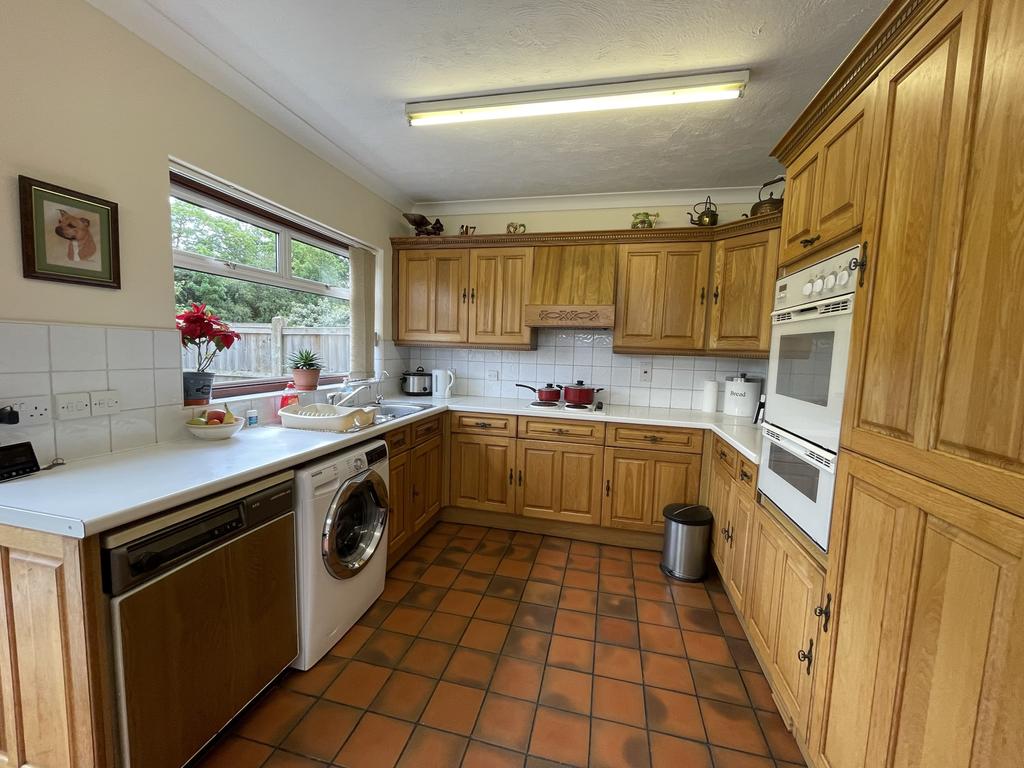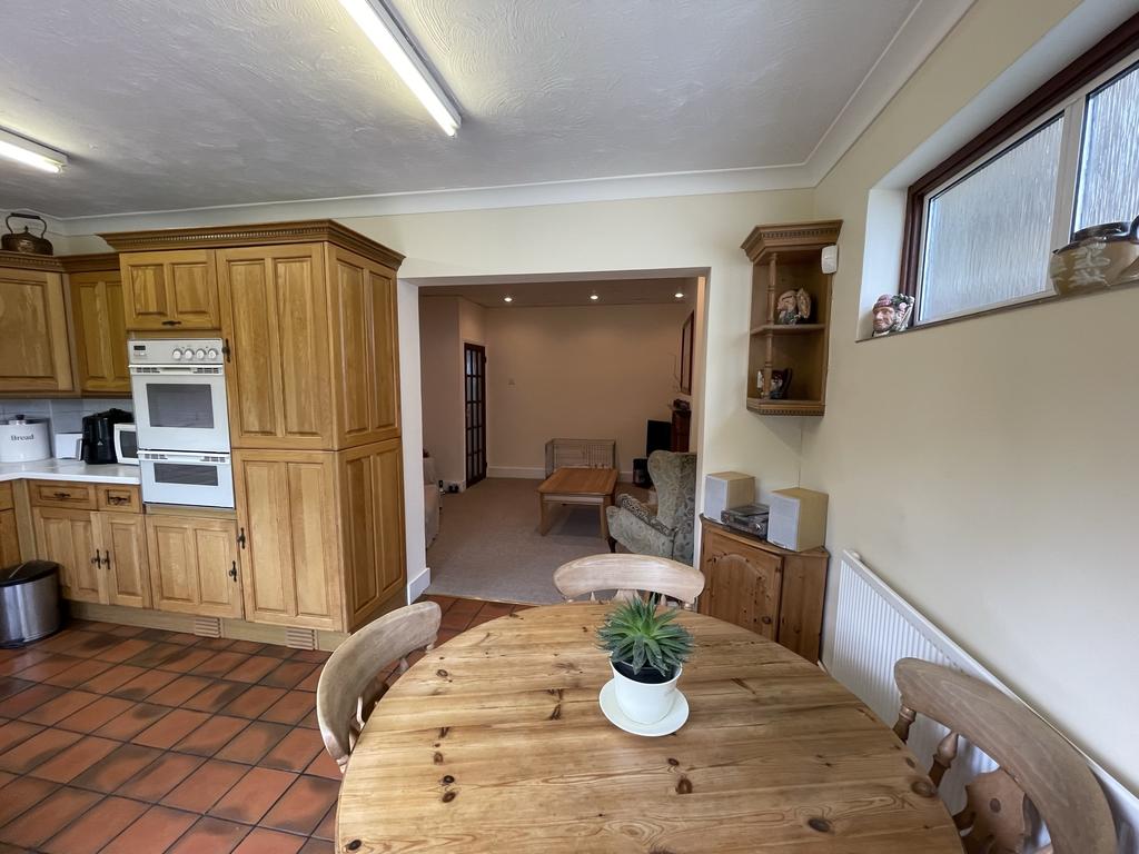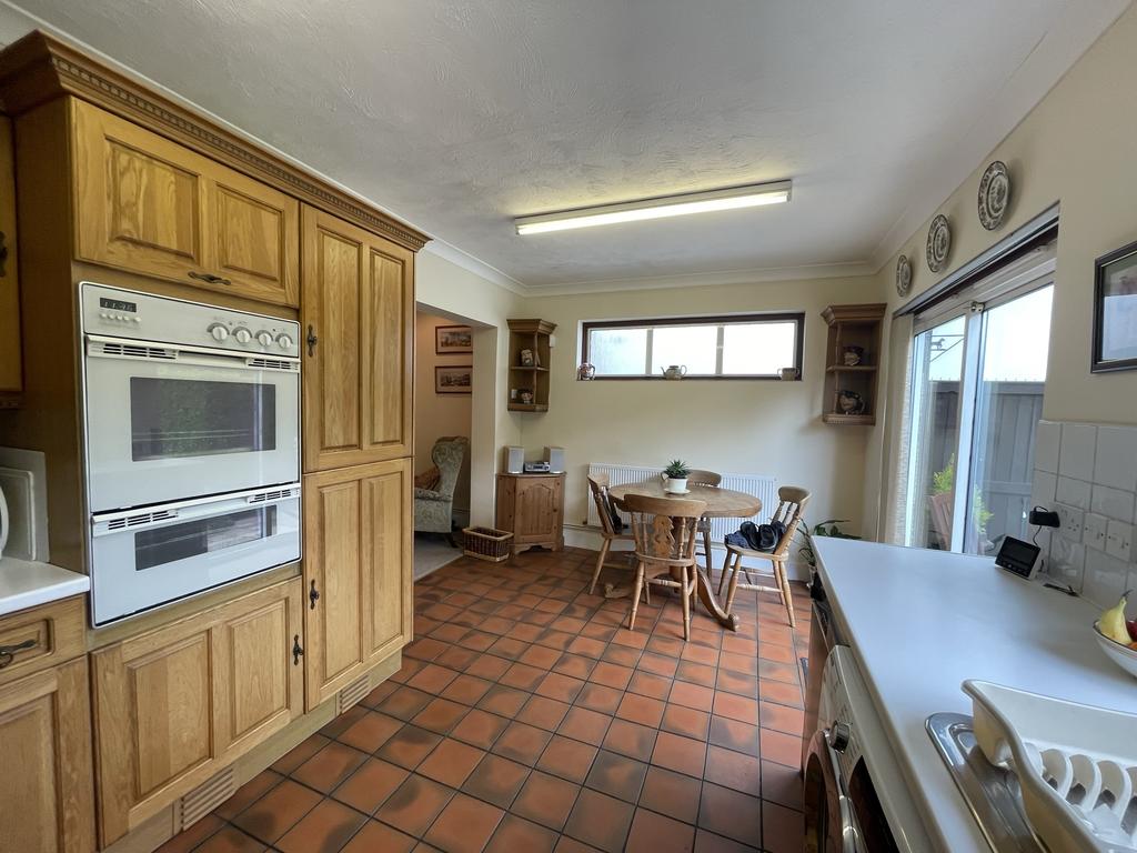 Kitchen /diner- 16'3 x 9'10 - tiled flooring, range of eye and base level units, worktops, 1 1/2 sink and drainer, gas hob, electric oven, radiator, double glazed window to rear aspect and side elevation, double glazed patio doors out to