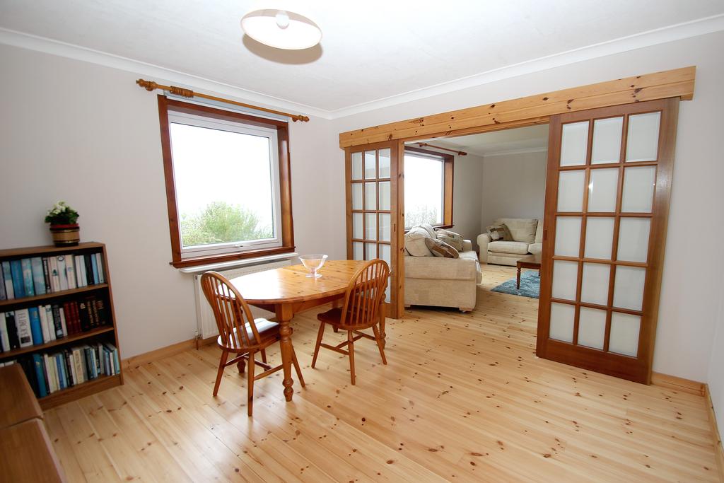 The accommodation consists of: an entrance vestibule; inner hallway with under stair store cupboard and stairway leading to the upper floor; lounge enjoying the stunning views across the village towards The Minch, wood burning stove set in a Fyfestone surround providing a welcoming focal point and glass doors opening to the dining room which enjoys the same stunning views; double aspect kitchen with a selection of base and wall mounted units, breakfast bar for informal dining, space for washing machine, free standing electric cooker, fridge and freezer along with a larder style cupboard; rear hallway with store cupboard; fully tiled family bathroom comprising a WC, wash hand basin and bath with electric powered shower over; two double bedrooms with fitted storage and single bedroom/store. On the upper floor the landing gives access to two store cupboards; kitchen/dining area with a selection of base units, electric hob, space for oven and washing machine; lounge enjoying the same stunning views; shower room comprising a WC, wash hand basin, heated towel rail and free standing electric powered shower; double aspect bedroom with wall mounted TV bracket and fitted storage; single bedroom and store/tool room.