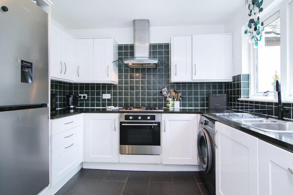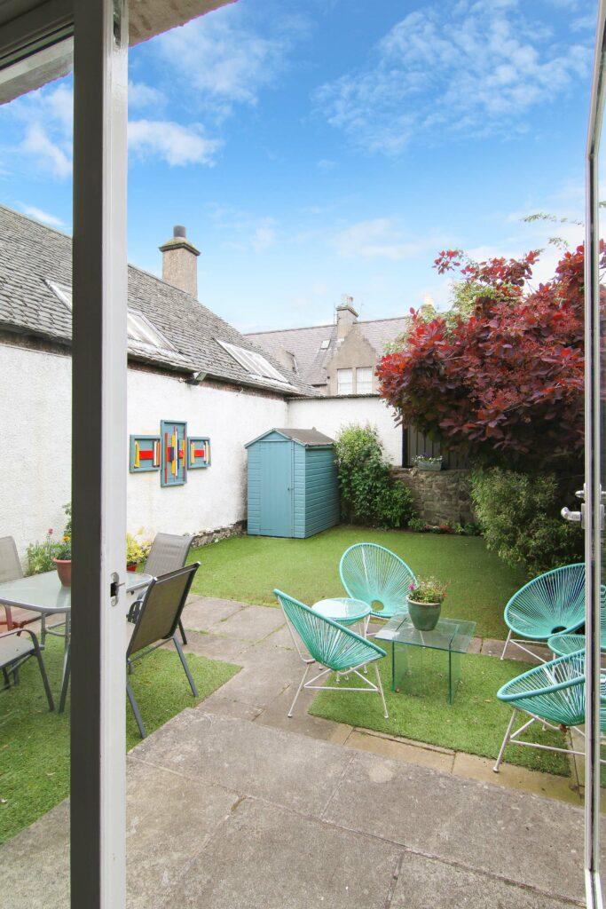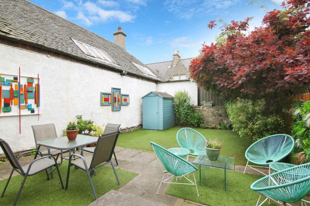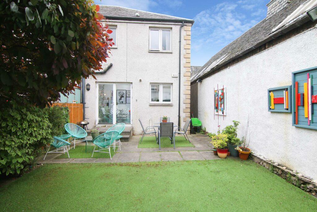 Set within a small exclusive development, of only two properties, this three bedroom semi-detached villa, offers a fabulous family home in sought-after location. The property is set to the rear of the plot, with extensive parking area and small front garden area. The front door opens into a welcoming hallway, passing by a practical downstairs WC, before reaching the living room. A stylish room, for entertaining, enjoying a south-facing aspect to the front. Continuing through the living room, positioned to the rear is a contemporary dining kitchen. Situated beside patio doors opening onto the enclosed walled garden, the dining area creates an inviting entertaining space, easily extended on sunny days. The sleek kitchen features a collection of white gloss cabinets framed by spacious granite-effect worktops and glossy black tiling, along with gas hob, electric oven and S/S chimney hood. Returning to the hall, stairs lead up to an airy landing, where there are three excellent bedrooms, all with built-in storage. There are two doubles and a good size single, which share a stylish three-piece bathroom, warm sandstone wall and floor ceramic tiling contrast against the gleaming white suite with over-bath shower. Additional storage is available in the attic. Gas central heating and double glazing is fitted throughout as well functional burglar alarm.