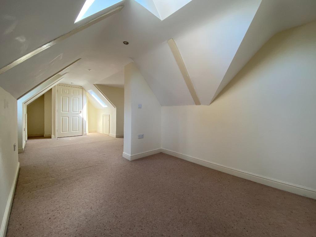 With powder coated aluminium double glazed window to the side aspect, storage cupboard, door to further bedroom, powder coated aluminium double glazed window to the rear and door onto a roof terrace.