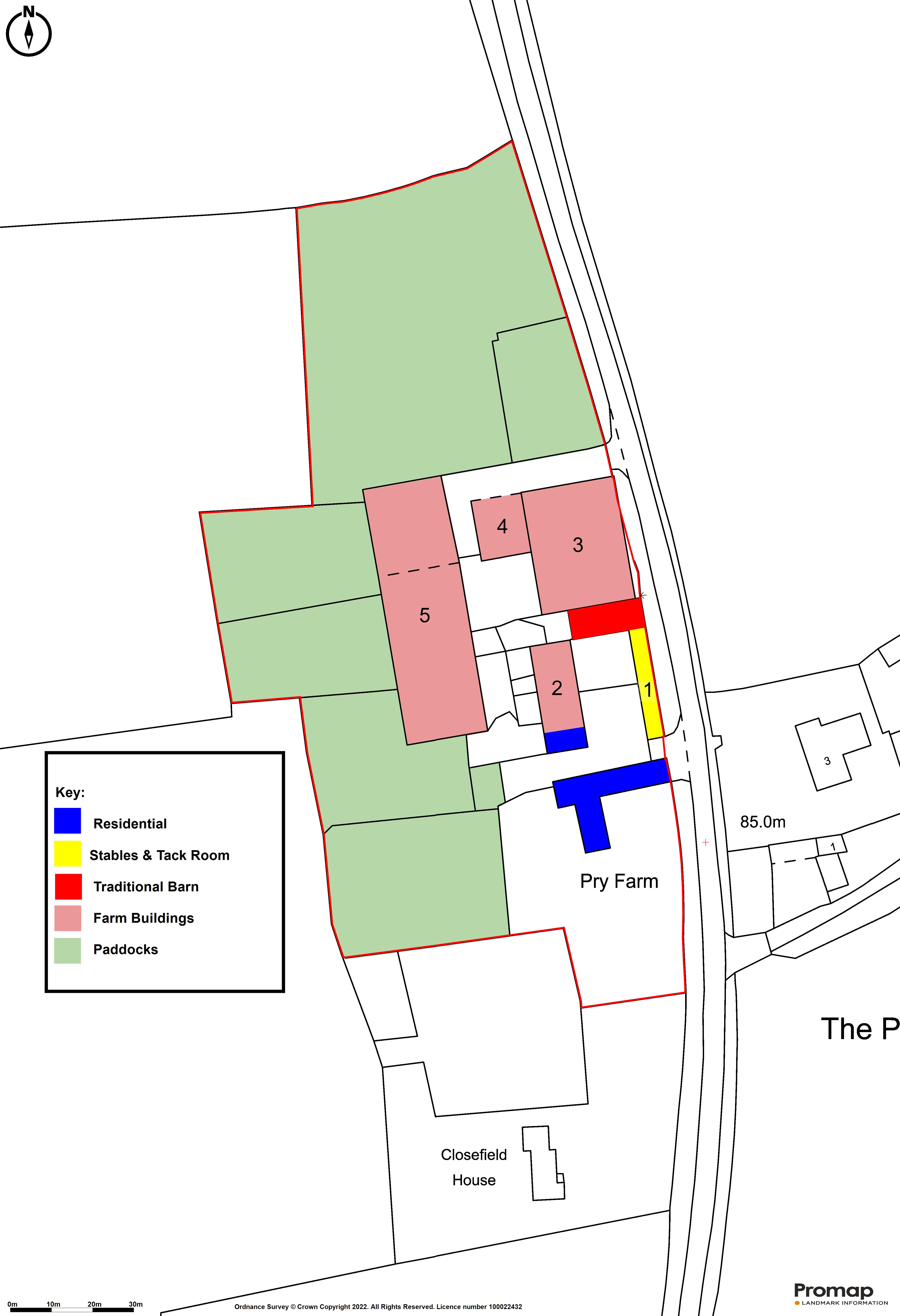 There are a range of buildings which can be accessed from two entranceways separate to the main driveway to the farmhouse. The buildings comprise of: 1. A stable block (27.09m x 4.28m) comprising 3 boxes, tack room and a feedstore. 2. Cattle shed (21.10m x 9.93m) of concrete block elevations under a pitched, corrugated roof with concrete floor and open sides. The building contains internal bull pens. 3. Covered yard (30.91m x 22.53m) of seven bay, steel portal frame construction, clad with part concrete block, part corrugated sheets under a pitched corrugated roof with concrete floor. Traditional Barn 4. A Dutch Barn (13.74m x 7.26m) of three bay, with a lean-to. 5. Covered yard (63.03m x 19.89m) of nine bay, steel portal frame construction, clad with part concrete block, part Yorkshire Boarding under a pitched corrugated roof with concrete floor. The buildings have the potential to be converted into equestrian use, subject to planning.