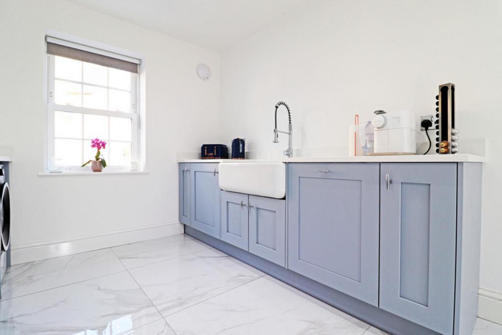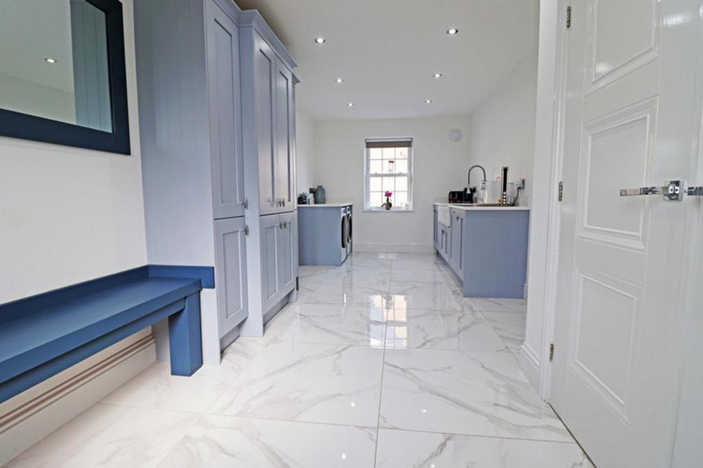 Off the kitchen is a large utility / boot room, which provides an alternative front entrance to the property and connects to the garage via an integral door. The utility houses the laundry facilities, Belfast sink with waste disposal, integrated dishwasher and drinks fridge, finished in the same unit style as the kitchen.