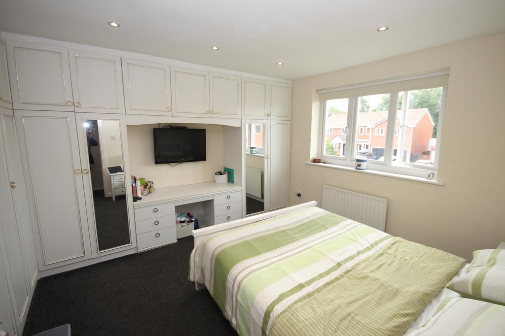 No. 1 12’ 4” x 11’ 7” (3.76m x 3.53m) fitted wardrobes on 2 walls & dressing table, radiator & uPVC double glazed window.