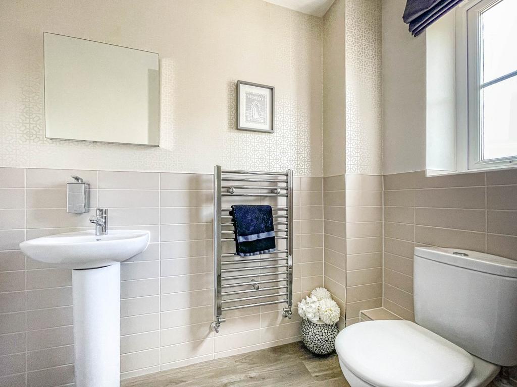Fitted with a two piece suite comprising of W.C and wash hand basin, Amtico flooring, uPVC obscure double glazed window, part tiled walls, heated towel rail.