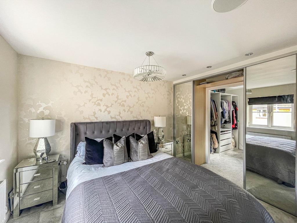 uPVC double glazed window, radiator, 2 fitted wardrobes with glass sliding doors, opening access to bedroom five, door to: