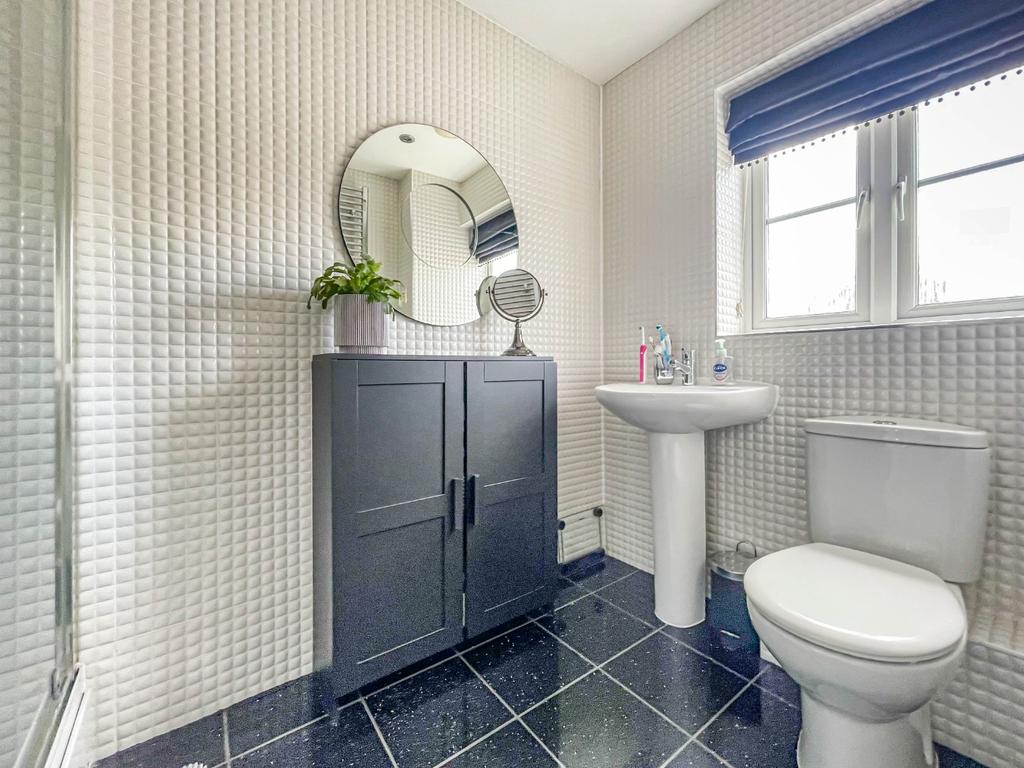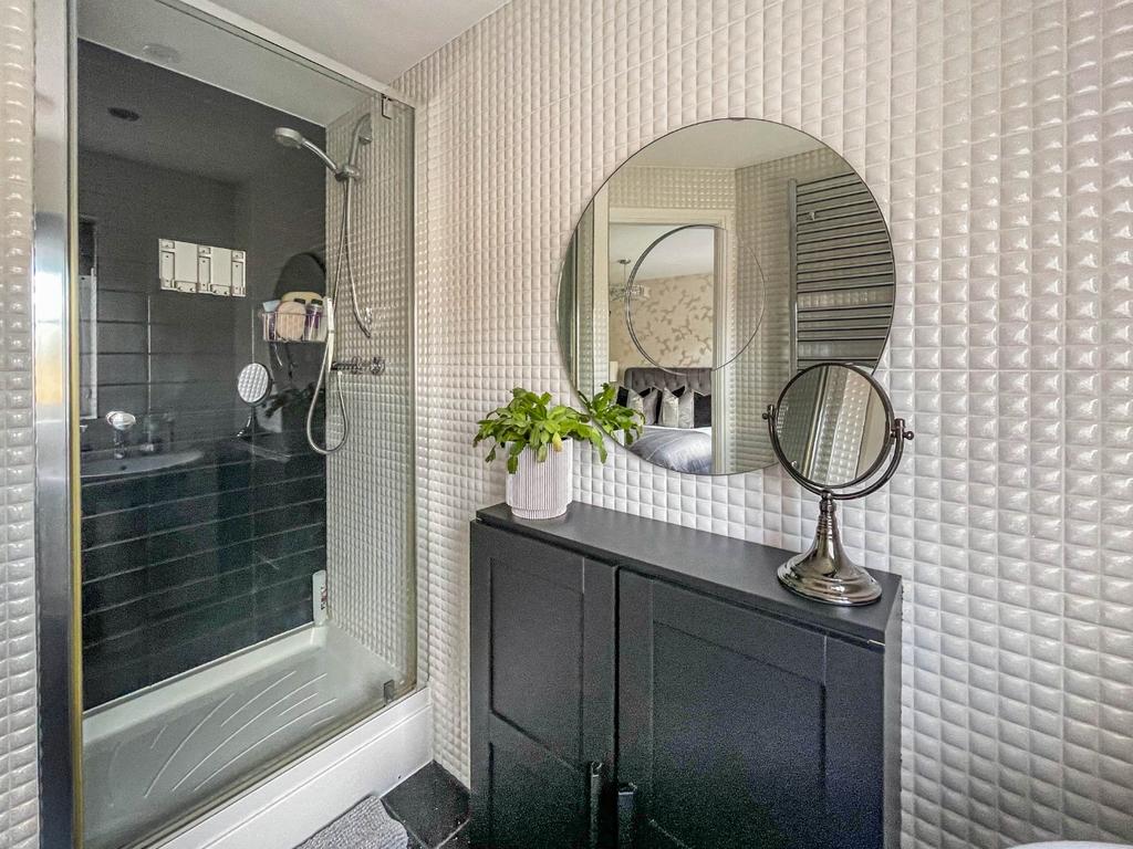Fitted with a three piece suite comprising of shower, W.C and wash hand basin, obscure uPVC double glazed window, tiled walls, heated towel rail.