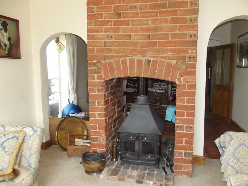 Off the kitchen lies a thoughtfully designed study or playroom, seamlessly connected to the sitting room by a charming double-sided log burner set within a handsome exposed brick chimney—a standout feature that adds warmth and character, ideal for cosy evenings.