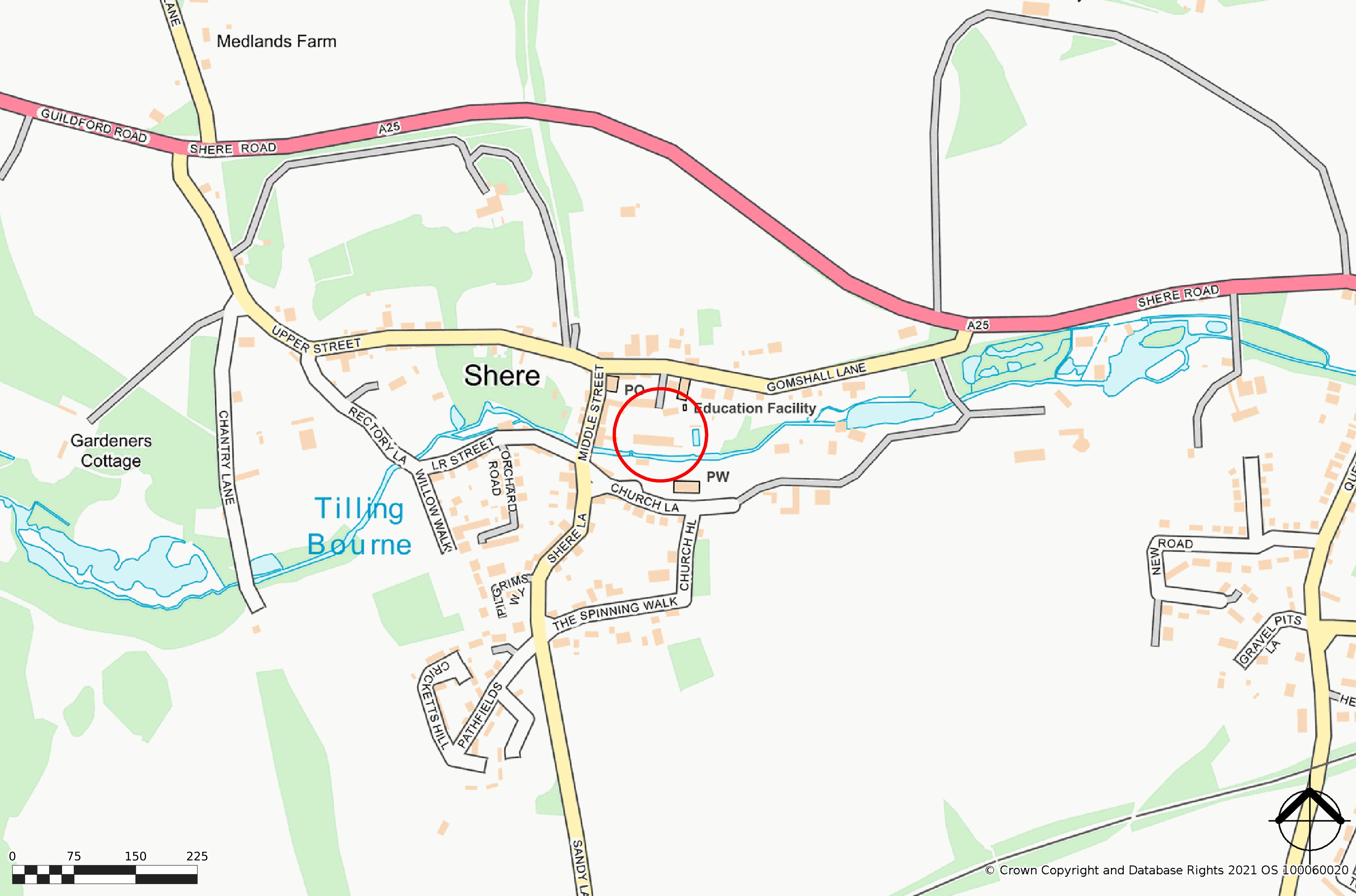 A spacious & well presented 3 double bedroom house with direct views over the local stream, located in a quiet spot in the heart of Shere village. Ground floor accommodation comprises a 24ft reception room with sitting & dining areas, feature fireplace & double doors leading out to the patio & rear garden, a good size kitchen/breakfast room with space for table & chairs, a separate utility room & wc. Upstairs offers a very large master bedroom with extensive wardrobes & windows overlooking the stream & church beyond, an ensuite bathroom (with bath & wall mounted shower), 2 further double bedrooms (one with fitted wardrobes) & a family bathroom (with bath & wall mounted shower). There is a very large loft with excellent head room & windows at either end, providing excellent potential to extend if required (subject to any permissions that may be required). There is a small private patio to the rear with space for table & chairs, then a lawned area beyond leads down to the stream (no risk of flooding) & with views beyond. There is also a single garage with power & light in a block (adjacent to No. 1) & off-street parking. There is also a well tended communal lawned area & individual bin stores. An exceptional, central location within a short walk of this sought after village. No onward chain.