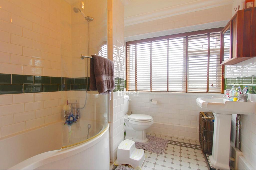 . The bathroom suite includes, panelled bath with shower over, low level W.C and pedestal basin. It has tiled walls throughout.