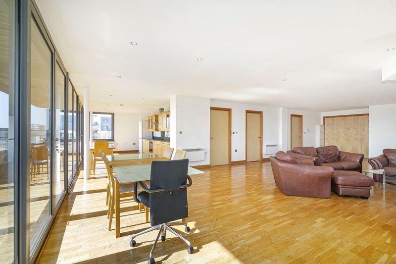 Penthouse apartment on this pristinely kept development, is this three double-bedroom, cornered aspect apartment, paired with two bathrooms and a sizeable open-plan kitchen/living area.