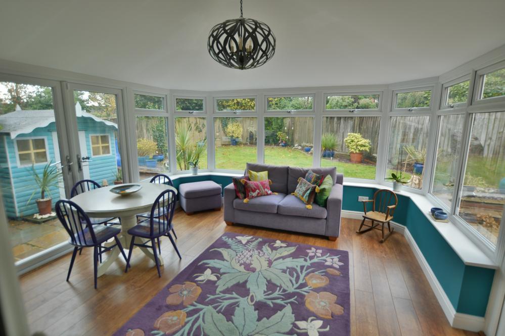 •Garden room with solid roof, double glazed French doors opening onto patio and further door to garden