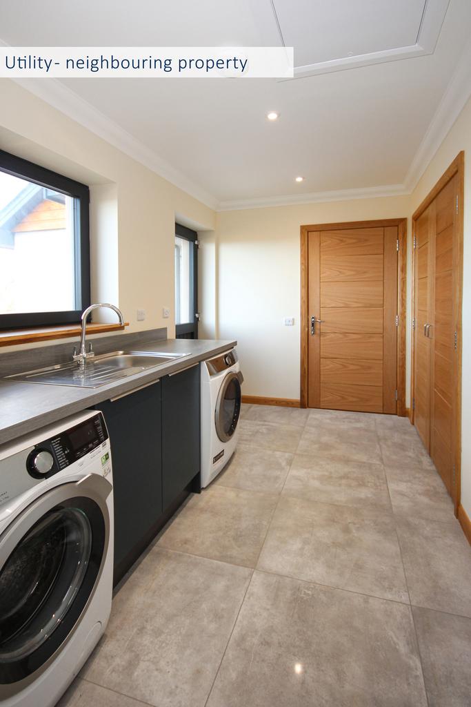 Featuring a spacious lounge with vaulted ceiling and fully glazed gable, balconies to the master bedroom and dining areas, fully fitted designer kitchen, luxury bathroom sanitaryware, high specification finish of solid oak internal finishings and slate and natural sandstone exteriors, this home will provide the ultimate luxury living to the most discernible of buyers. Underfloor heating to the entrance and lower floor levels, high specification timber frame construction, eco-friendly air source heat pump and triple glazed windows provide high levels of energy efficiency and comfort to an already well insulated home.