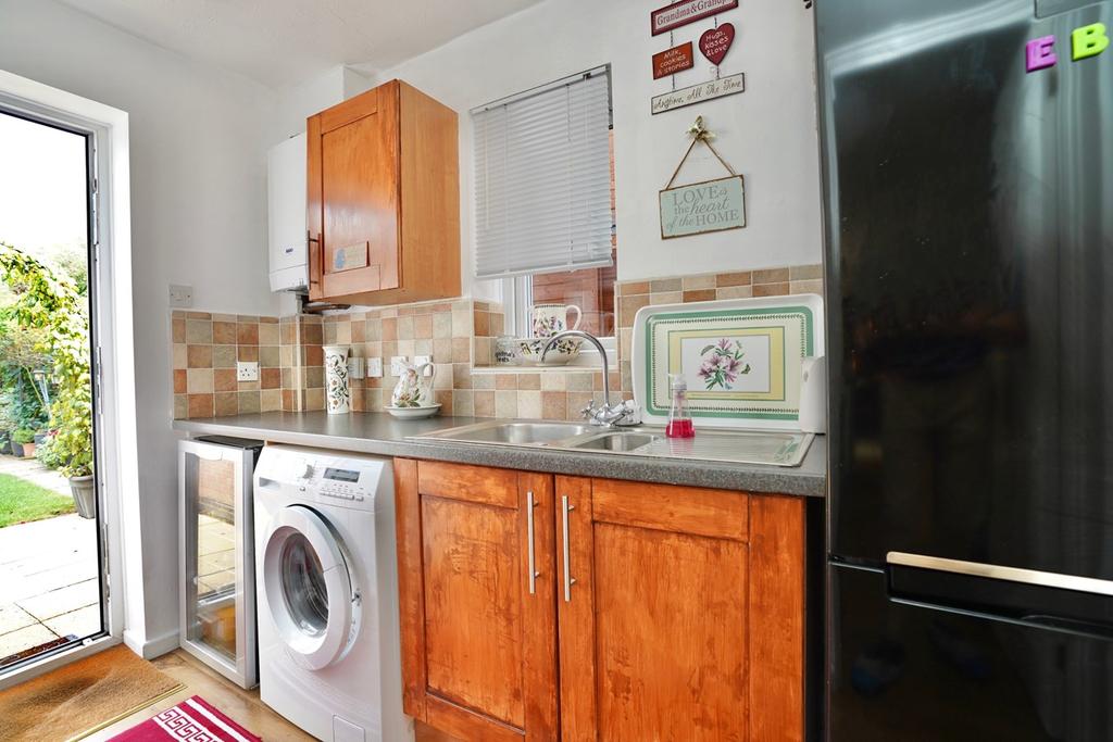 Fitted in a range of base and wall mounted units with work surfaces and tiling, wall mounted gas fired central heating boiler approximately two years old serving hot water system and radiators, UPVC door to garden aspect, single drainer one and a half bowl sink unit with mixer tap, appliance spaces, Karndean flooring, internal door to