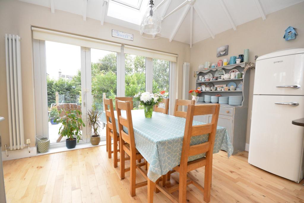 A home of considerable period charm and character, this is apparent in the wealth of intact period features including ornate plasterwork cornice, original woodwork including pine panelled doors and handsome staircase. The outer entrance vestibule gives way to an impressive reception hallway which extends to thirty-one feet in length with a focal point staircase with large cloaks and storage cupboards. The public rooms include an elegant sitting room with bay window and comfortable TV/family room each of which have solid fuel stoves. The wonderful kitchen enjoys open plan access to a stunning dining/garden room with both French doors and separate bi-fold doors allowing direct access to the deck and taking full advantage of the garden views. Particular attention is drawn to the feature vaulted-style kitchen and dining/garden room ceilings which enjoy excellent natural light from velux roof lights. Attention is also drawn to the ground floor study which may well appeal to home workers and well-appointed utility room which has both Belfast sink and separate garden access. The ground floor is completed by a bright shower room.