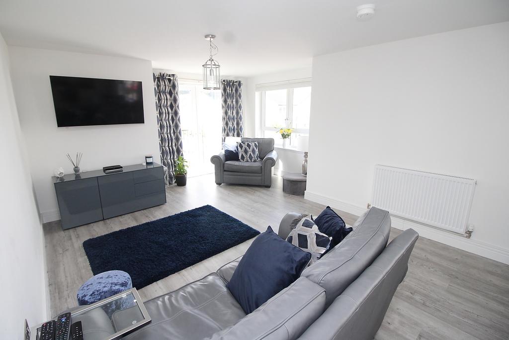 - A generous lounge/diner with luxury open plan kitchen enjoying open views towards dumbarton rock
