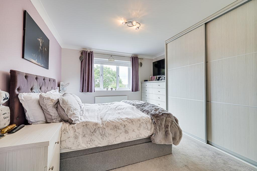Double glazed window to front, coved cornicing to smooth ceiling with ceiling light, built in wardrobes with sliding mirrored doors, radiator, carpeted flooring.