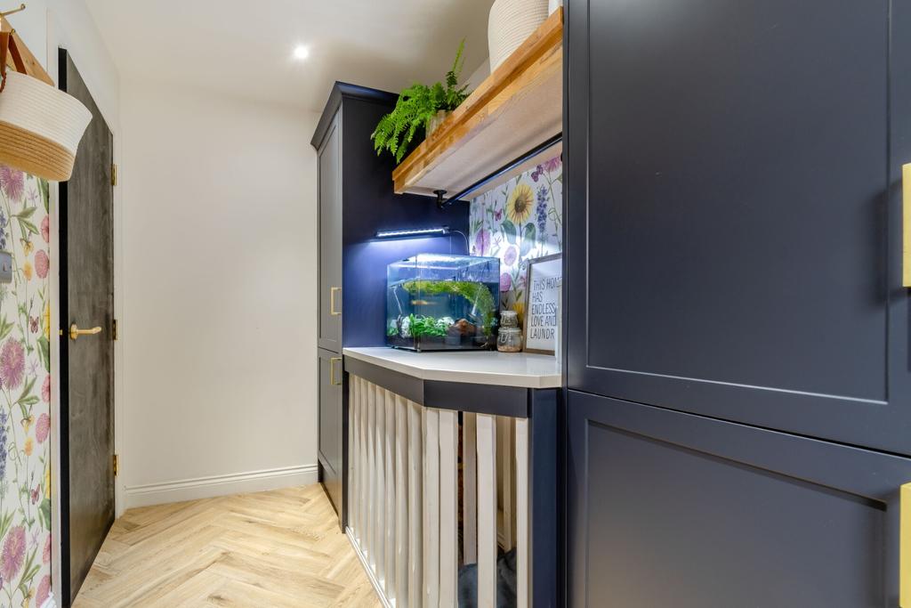 The adjoining utility has furniture matching the kitchen, conceals plumbing for an automatic washing machine, has space for a dryer and houses the central heating boiler. The room has full tiling to the floor and a door to the side aspect.