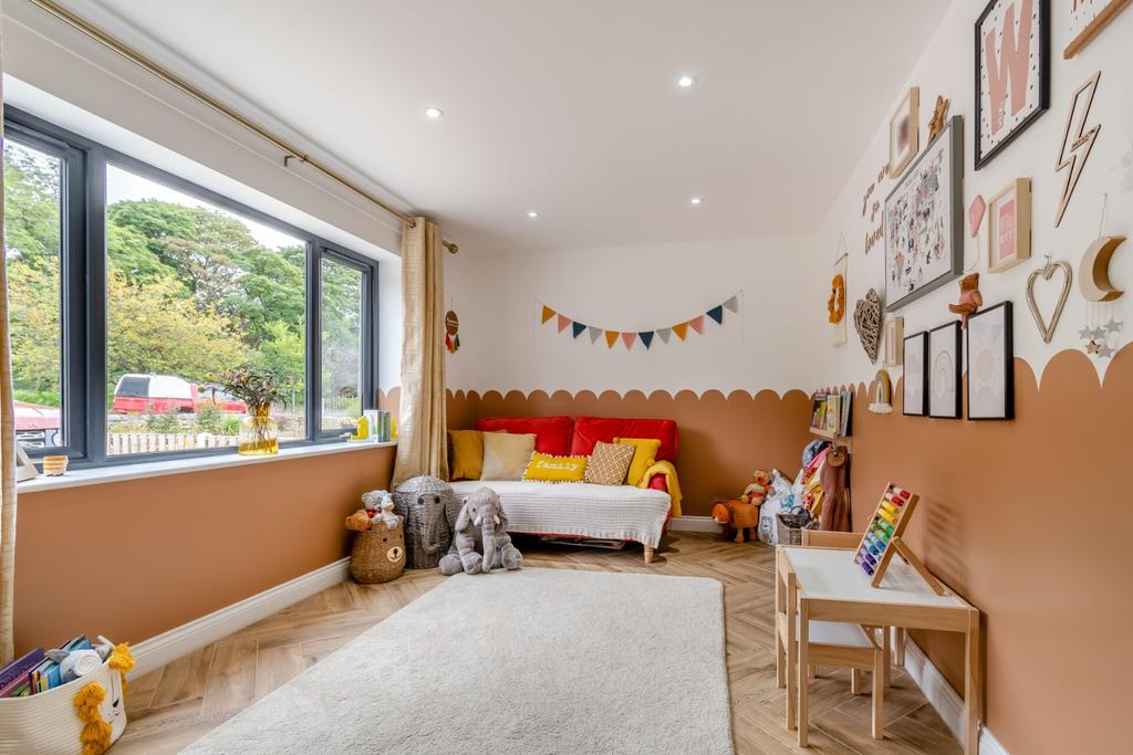 A playroom offers versatile accommodation, positioned to the front aspect of the home, has full tiling to the floor and a window which overlooks the front courtyard.