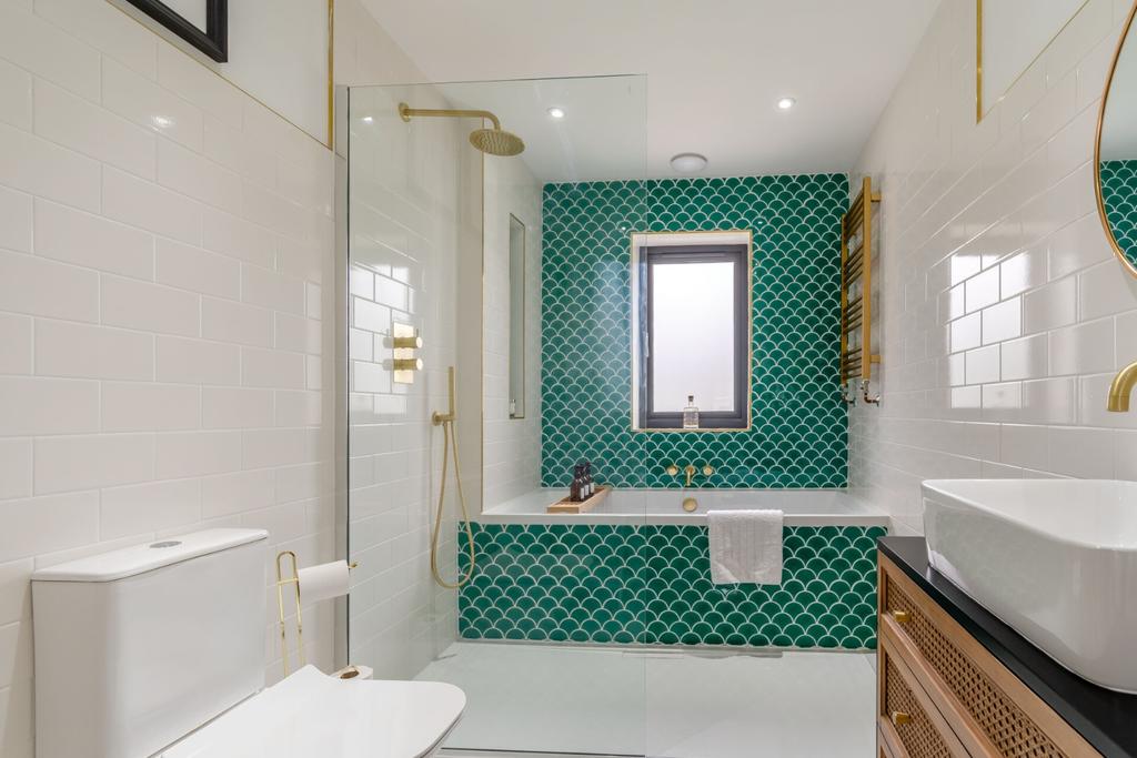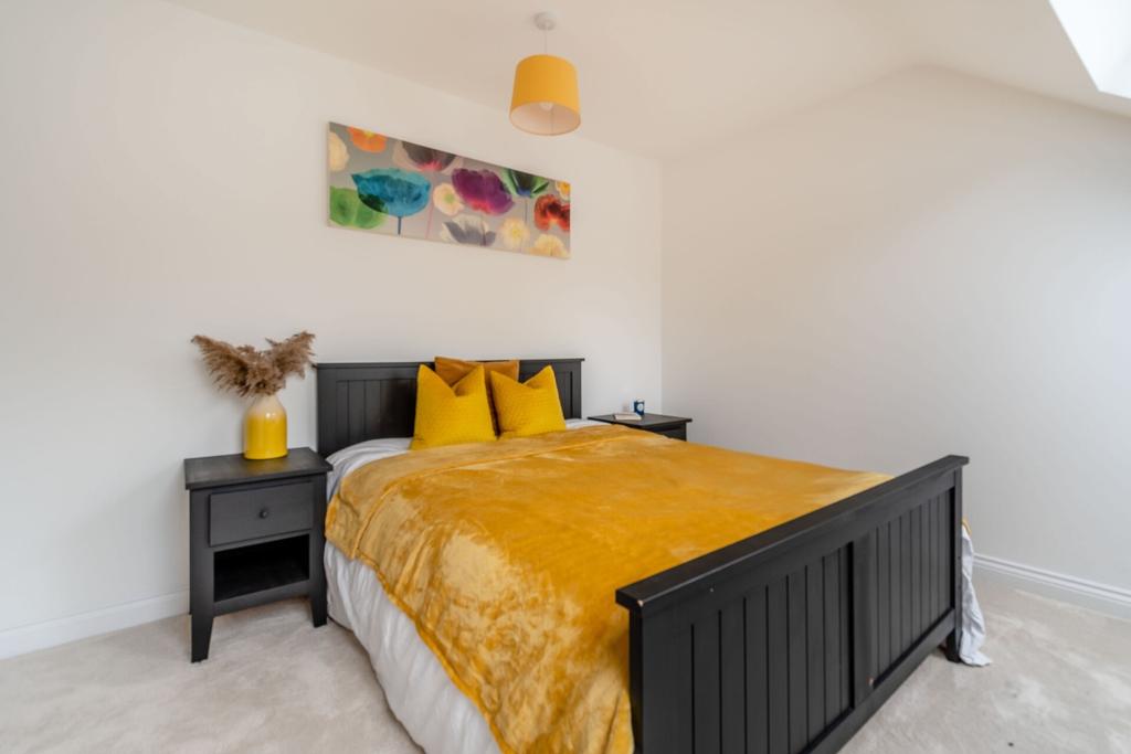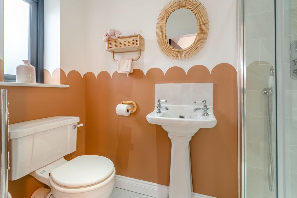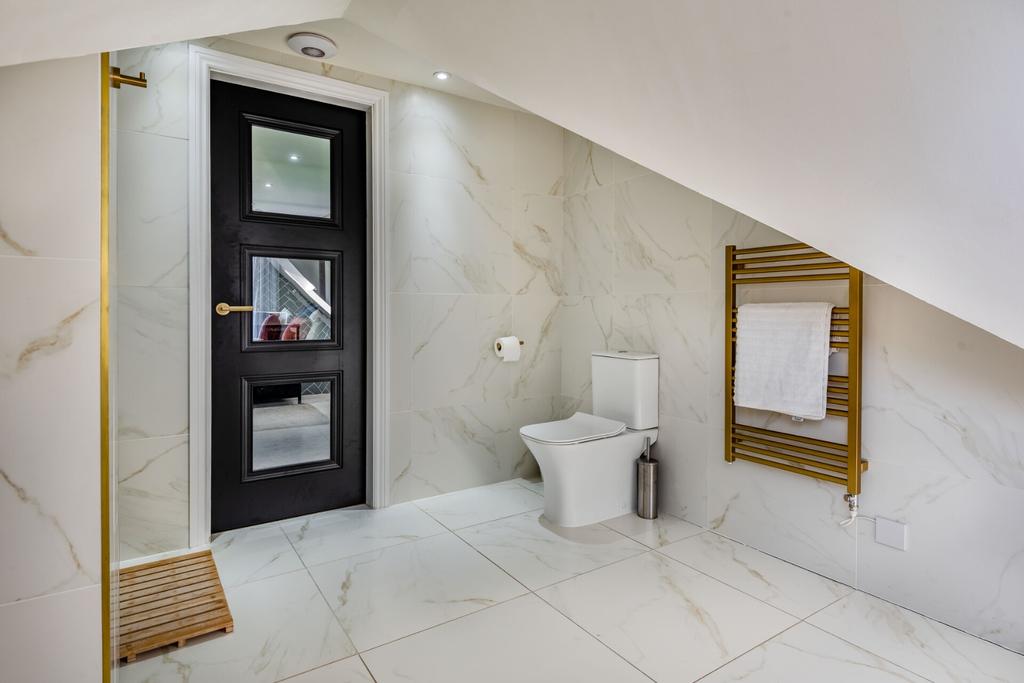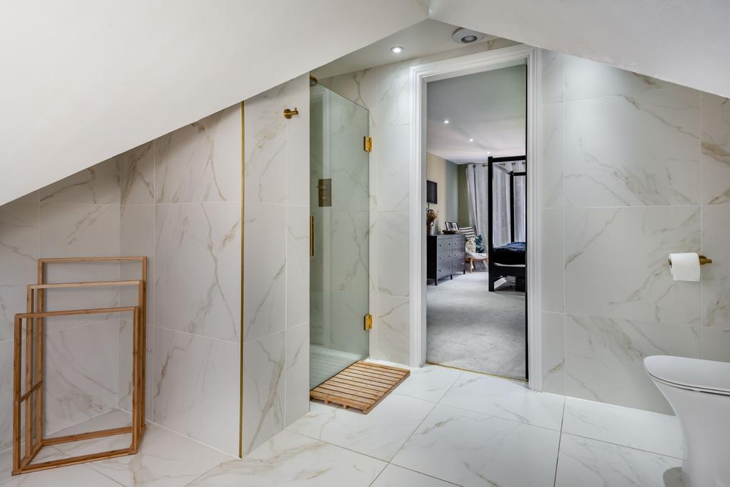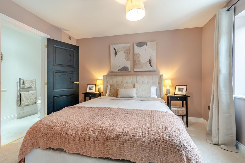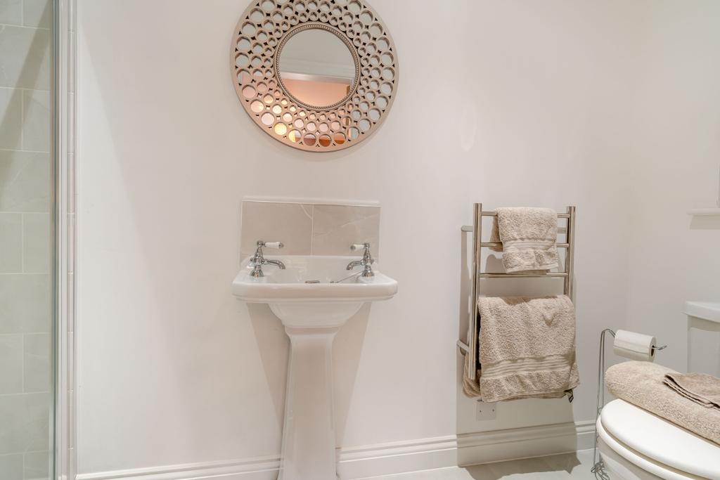 The ground floor guest bedroom offers double proportions, with a window to the front aspect and En-suite facilities presented with a modern three-piece suite. The room has complimentary tiling to the walls, a heated towel radiator and a frosted window.