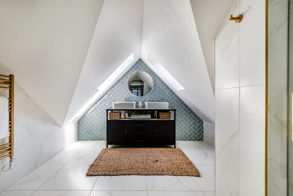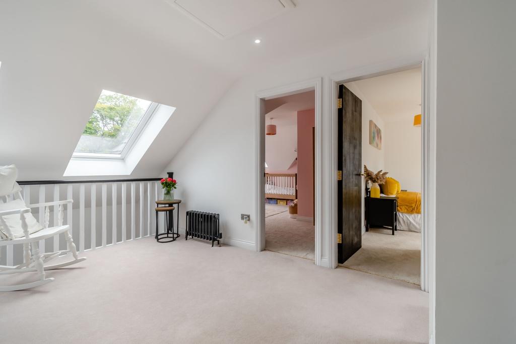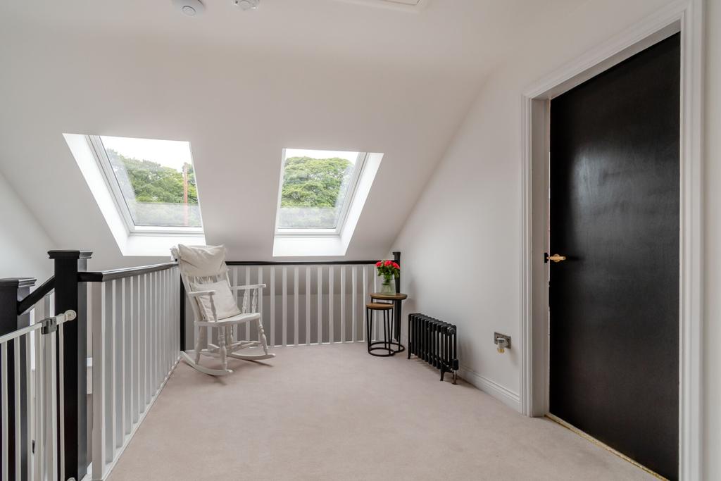 A spacious galleried style landing has two large Velux windows, inviting exceptional levels of natural light indoors, a cupboard is home to the pressurised cylinder tank. Access to the loft space.