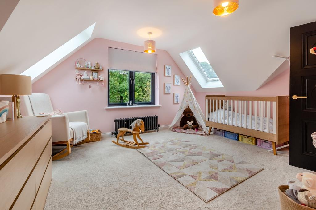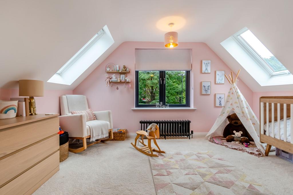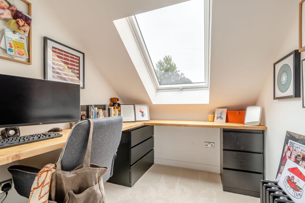 A fifth bedroom is currently used as a home office and has a Velux Skylight window.