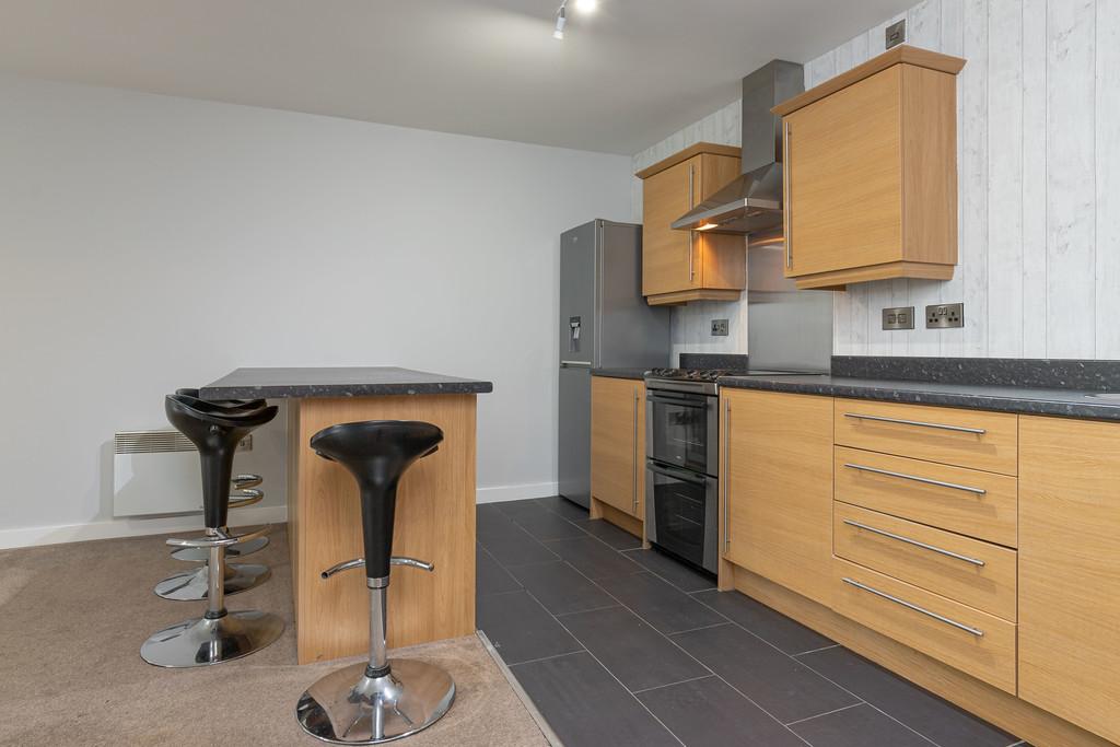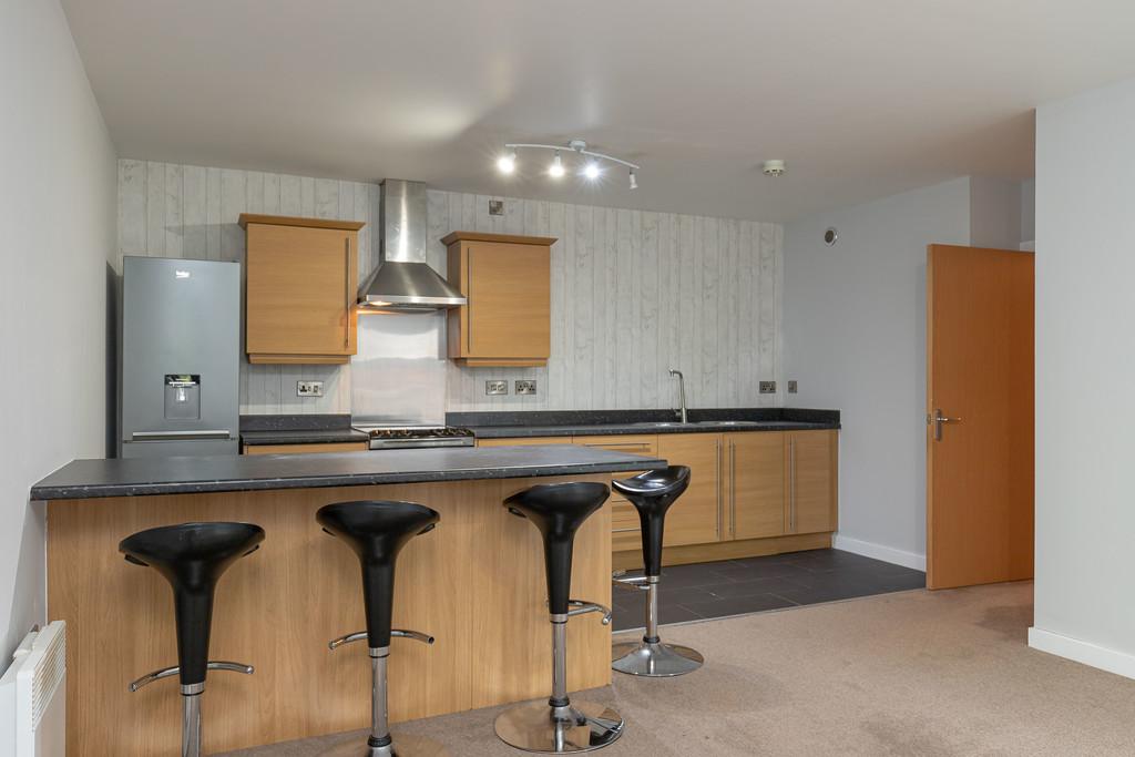 OPEN PLAN LOUNGE/KITCHEN 16' 7" x 22' 0" (5.05m x 6.71m) The hub of the apartment, the open-plan kitchen/dining/living room is where you will spend most of your time. The kitchen area features an integrated electric cooker, fridge/freezer, and sink/drainer. There are plenty of storage solutions via the host of kitchen cupboards and drawers, in addition to lots of worktop space, and a huge island with 4 stools and an integrated wine cooler! On top of this, there is lots of room left over for an attractive lounge/diner area with your very own Juliet balcony.