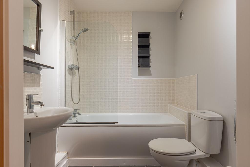 BATHROOM 6' 5" x 5' 11" (1.96m x 1.8m) The main bathroom boasts a bath with shower, wash basin and toilet. Heated towel radiator also provided.