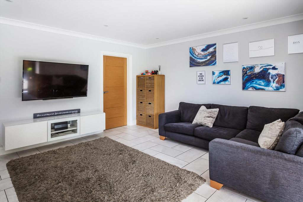A real feature of the property is the large kitchen area which enjoys a kitchen island with a modern kitchen, dining area as well as a living room all cooperated into one open plan living space. This area has bi-fold doors, stretching almost the full width of the room which leads onto the garden.