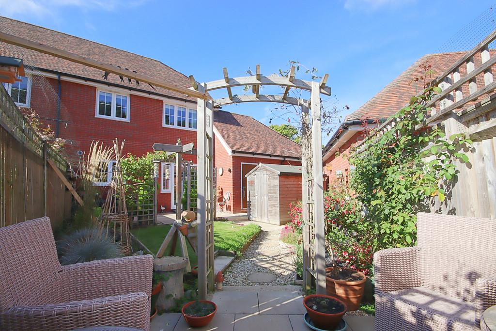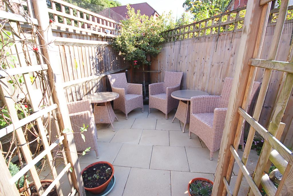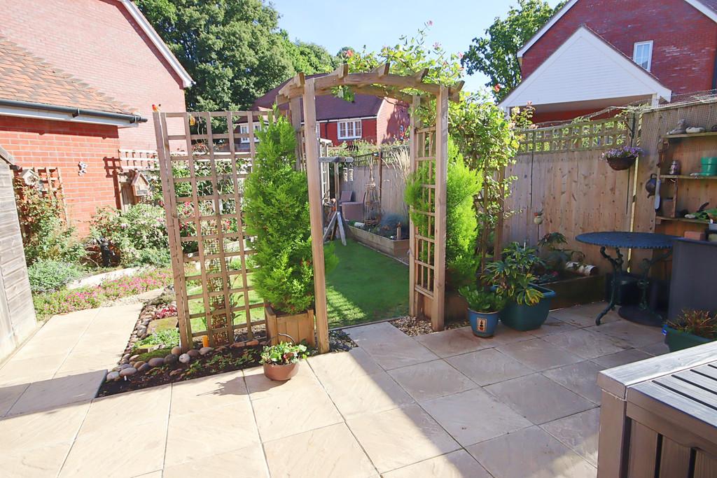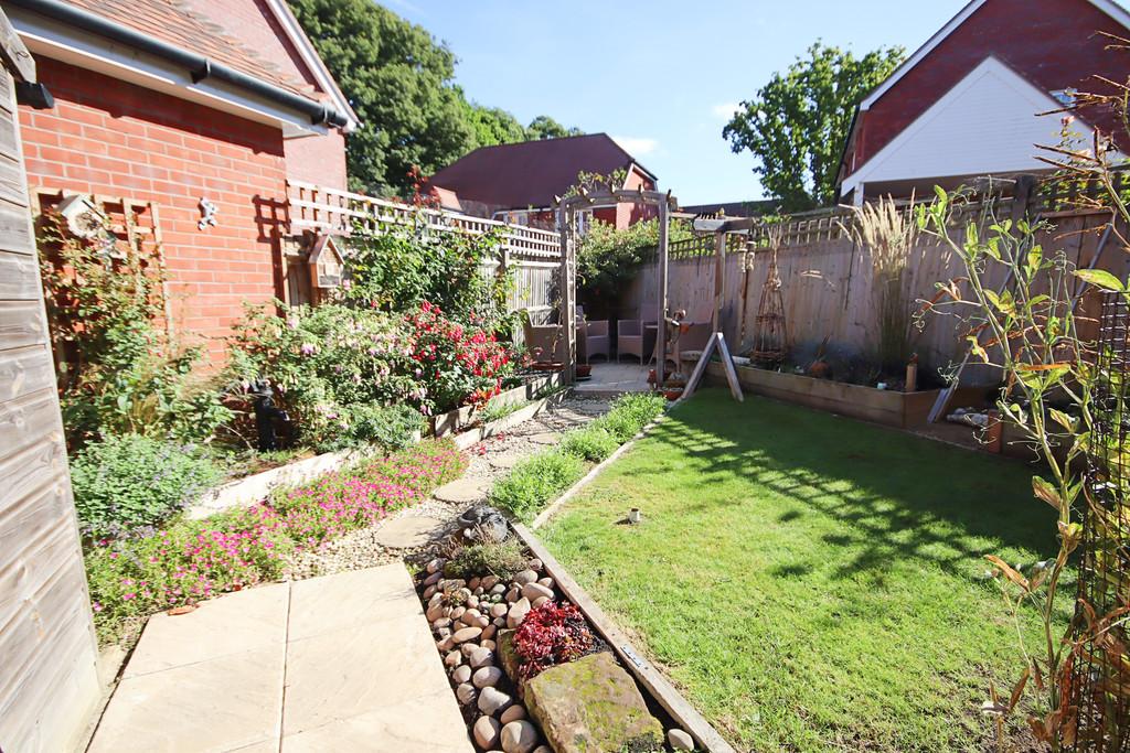 A beautifully landscaped rear garden comprising: A full width patio with a wide path running along the rear of the garage towards the side garden. From the patio, a wooden arbour leads through to an area of lawn with two raised flower planters to one side and stepping stone path along the left hand side. The path wanders towards the rear of the garden passing well stocked and raised flower beds and towards the rear boundary is a further terrace with arbour that makes an ideal place to enjoy the setting sun. There is also a good sized timber garden store, exterior courtesy lighting and power point.