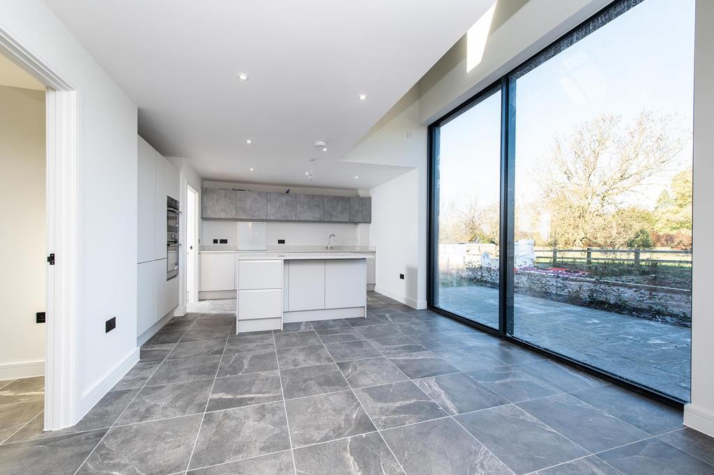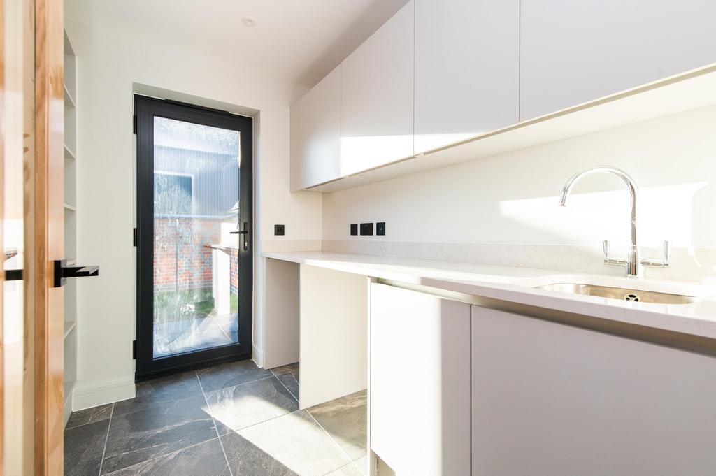 The hall is fully glazed, with a coat cupboard and staircase rising. The living room is bright and spacious with windows to two sides, wood burning stove and a door to the patio. An open-plan fitted kitchen has integrated appliances and an island unit, sliding glazed doors to the outside and a large pantry. The utility room has a sink and plumbing, a downstairs cloakroom and a door to the patio. The home office/study is ideal for home working.