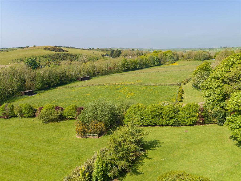 The property offers tremendous privacy and a sense of comfort and grandeur. Set in stunning landscaped parkland gardens and sheltered paddocks, extending to approximately 19 acres in all. The property includes a two bedroom guest cottage and large indoor equestrian centre, a games/leisure wing, tennis court and stables. The principal accommodation extends to seven reception rooms some with access to a wide sun terrace, and four bedrooms with two en-suites and family bathroom. Conveniently located for easy access to Douglas, Airport, King William's College and Buchan schools. Viewing strongly recommended to fully appreciate this unique property.