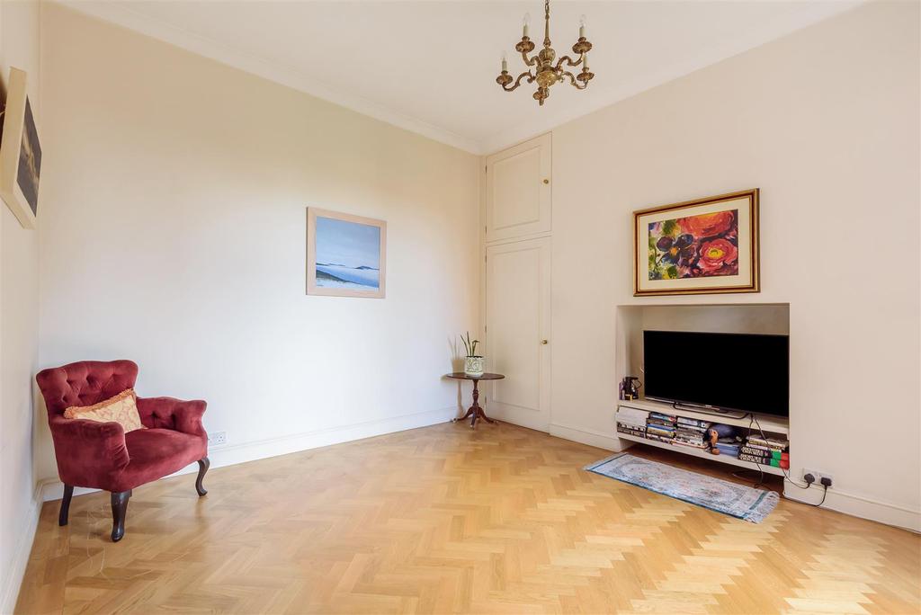 This charming family-sized apartment benefits from beautiful period features including an ornate fireplace and cornicing, and lift access. The rear of the property enjoys tranquil views over the communal gardens, which are beautifully maintained all year round by excellent private on-site property management.