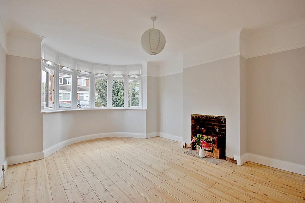 With double glazed bay window to front aspect, feature fireplace recess, picture rail and ceiling light point.