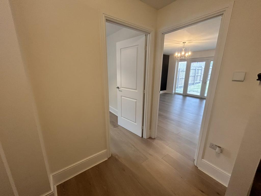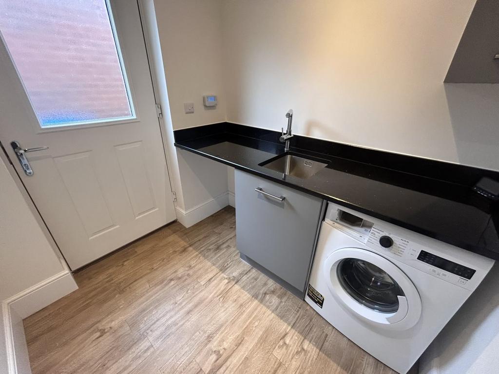 Off the living room are double doors, providing an entrance to the Dining/Kitchen (also accesible from a separate door in the hallway). The dining area offers plenty of space for a family dining table as well as space for stools at the breakfast bar if desired. The kitchen is large and fitted with lots of units/cupboards as well as quality appliances (Fridge Freezer, dishwasher, Oven, Hob). Off the kitchen is a separate Utility room with washing machine and a side door in to the garden There is wooden flooring in the kitchen/diner & utility room.